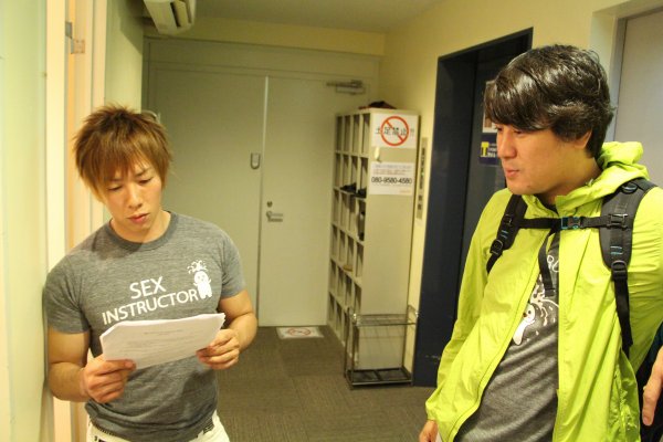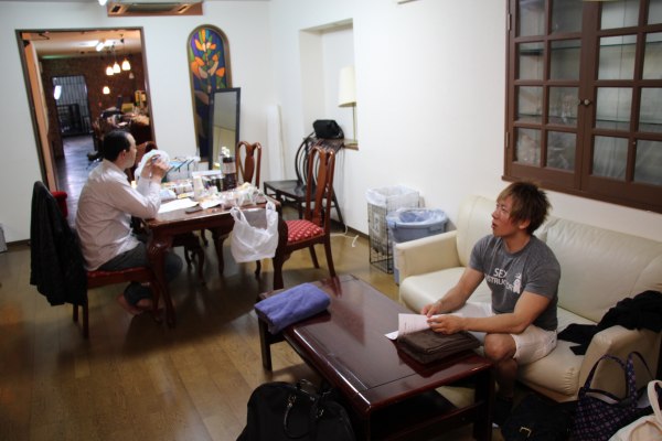 上午10點,他們終於到了拍攝的現場。這些被稱為「ハウススタジオ」(House Studio)的地方,一般是由單棟房子或單位改裝,並劃出一個不是用作拍攝的地方來給男優當準備室。