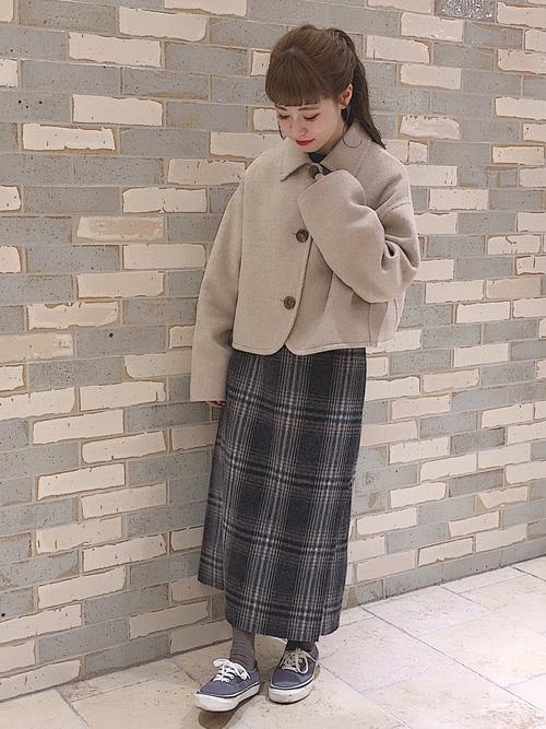 怕冷的SIS可以在長格子裙裡搭上襪子,保暖又美美的〜