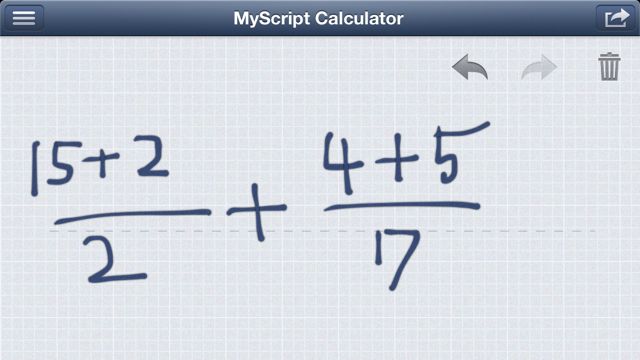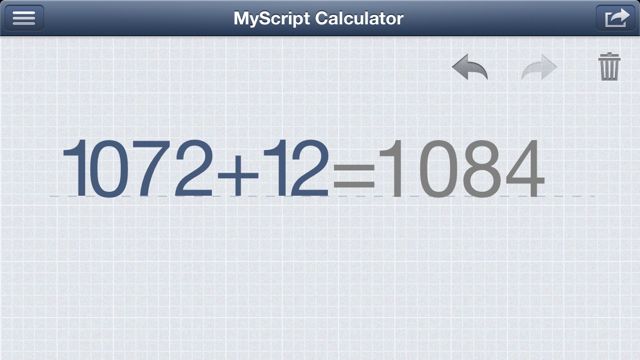 只要在版面上手寫算式,然後「MyScript Calculator」就會自動算出答案!