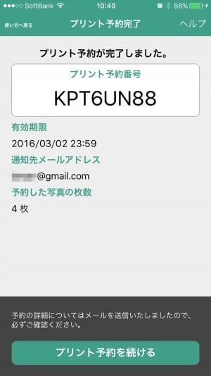 按下「アップロード」(上傳)後,應用程式會顯示「預約編號」,你也會收到一個記載了這個號碼的電郵。你可以在上傳日的或翌日到便利店列印。