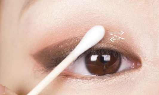 ▼在眼頭的位置用棉棒掃開,營造自然感。