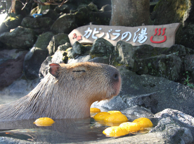 本來覺得水豚很像老爺爺,並不怎麼喜歡。但看完這些照片後,覺得牠萌點爆燈!有機會的話,想跟牠們一起浸溫泉呢~