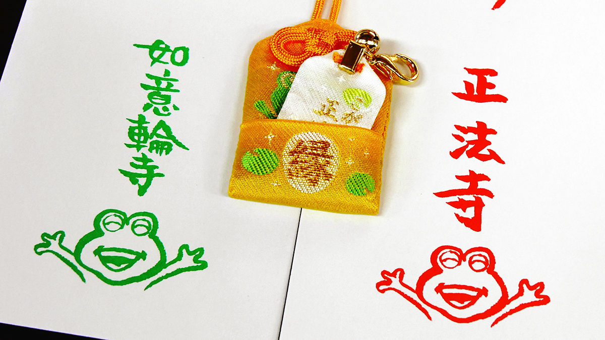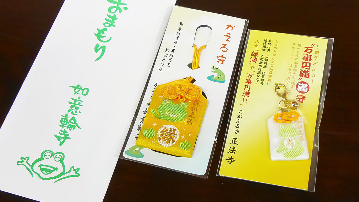 在這裡買到的御守叫「子がえる」,跟如意輪寺的合起來的話...