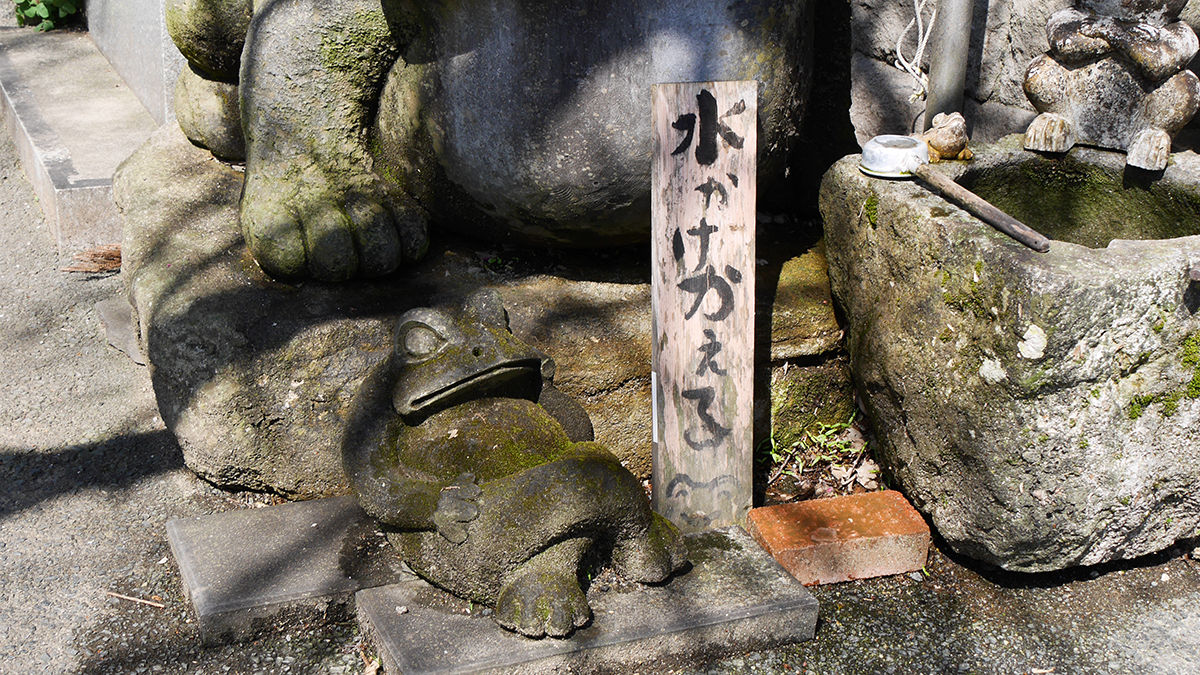 「水かけかえる」就是請來客把水灑在青蛙身上的意思,看牠的姿勢就知道牠正等待著灑水。