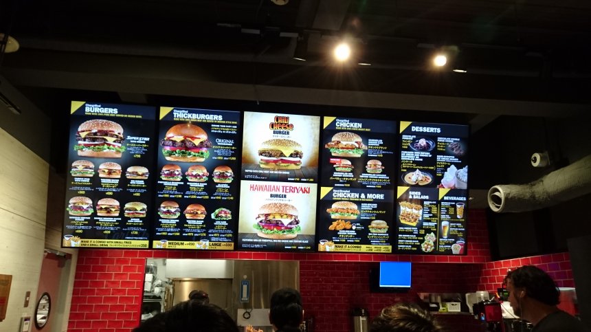 和其他美式快餐店一樣,進內就清先到櫃位點餐。雖然已過高峰期,但還是要排十分鐘隊才能點餐。等待時,就先望望餐牌,決定吃些什麼吧。和以前香港哈迪斯不同,這裡沒有西部牛仔飯,沒有蘑菇飯,而是和美國一樣主打漢堡包。想吃西部牛仔飯的可能會比較失望了。