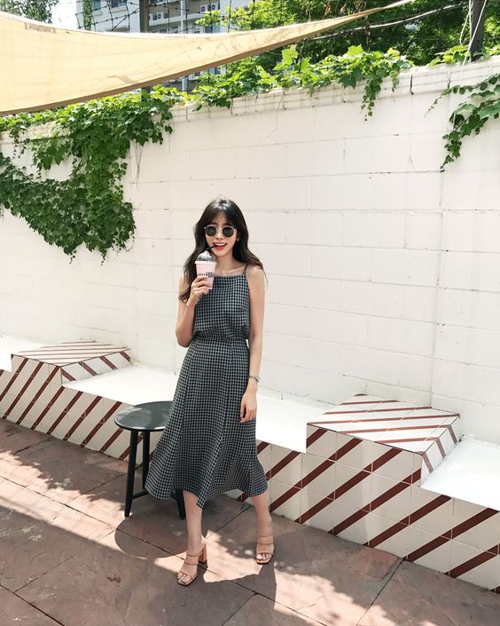 如果SIS只有肚子肉,手臂卻很瘦的話,可以多穿以下的收腰款長裙,非常顯瘦~