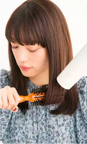3.髮尾的部份SIS可以使用捲毛梳的幫助向內吹,造出美美的內捲弧度〜