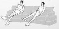 先用雙手撐著沙發,然後整個人向下蹲,再用手臂的力度把整個人抬起。注意手肘要成90度喔~ 這個動作可以鍛鍊到手臂、腰腹、大腿和臀部喔~每次做10下,做3組。