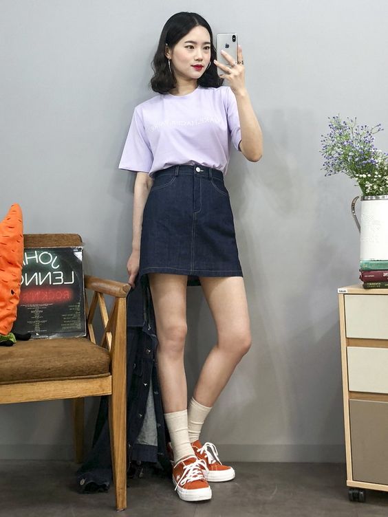 高腰裙的定義就是可以把裙子拉到腰的位置,而且裙子一定要拉得高過半個大腿,才能讓腿露出更多,但是要小心別走光啊!