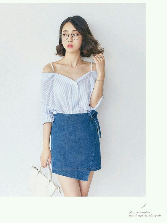 恤衫款式也有很多款,純色、格仔、橫條、直間等,重點是配搭不要太花巧,若選了直間的恤衫記得下半身要配搭純色的裙子。