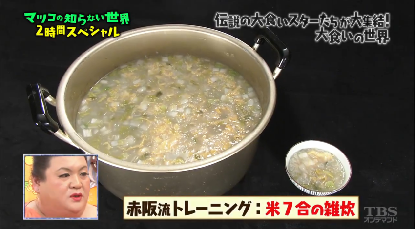 另一位是大胃王女王赤阪尊子,她經常以砂糖水或茶增加食欲。
