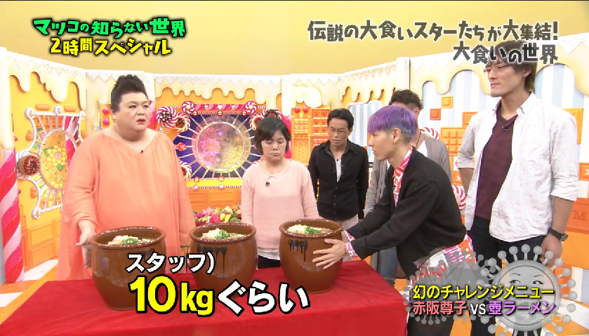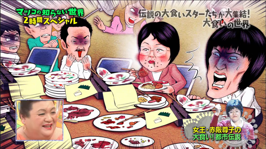 大胃王比賽在日本蠻流行的,參賽者要在一定時間內吃一種料理,吃最多的為勝者。除了大型比賽、電視特輯,不少食店都會自行舉辦大胃王挑戰。上星期的「マツコの知らない世界」裡,邀請了幾位傳說中的大胃王分享這個業界的事情。