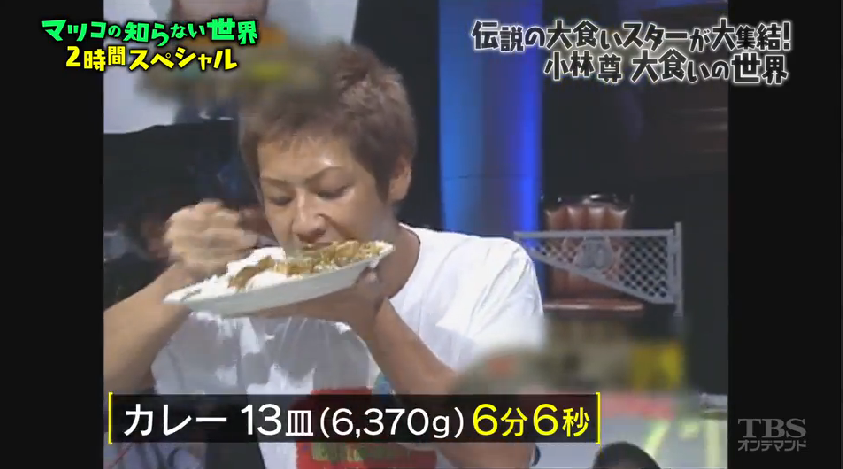 小林尊是著名的大胃王選手,在日本的大胃王比賽屢戰屢勝。