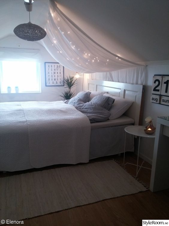 把窗簾加上小燈泡也能做到同樣的效果,更有照明的功能,絕對是小資女們必備的選擇!