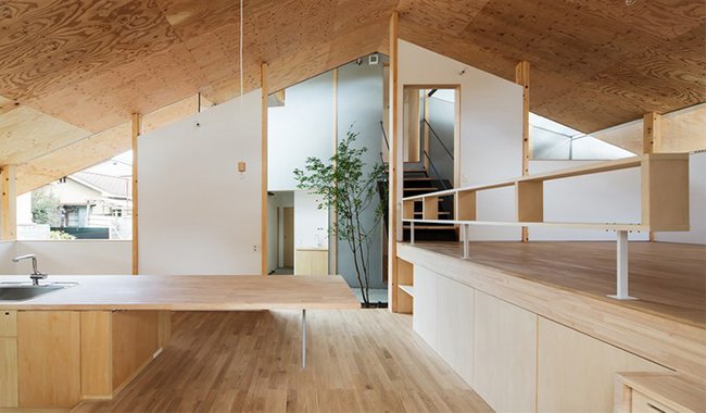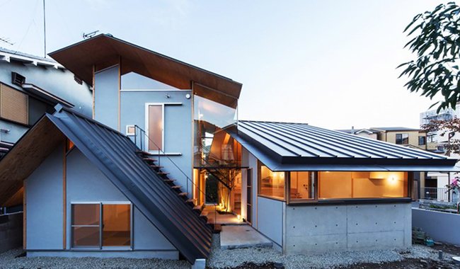 Eaves Around House是出自日本設計公司y+ M design office,是一所名為「屋簷下的房子」的建築物,一如其名,從外觀看,整間房子都被傳統的雙斜屋頂所覆蓋,有趣的地方是,部份的屋頂更是由地以起,當中設有梯架供人上落。