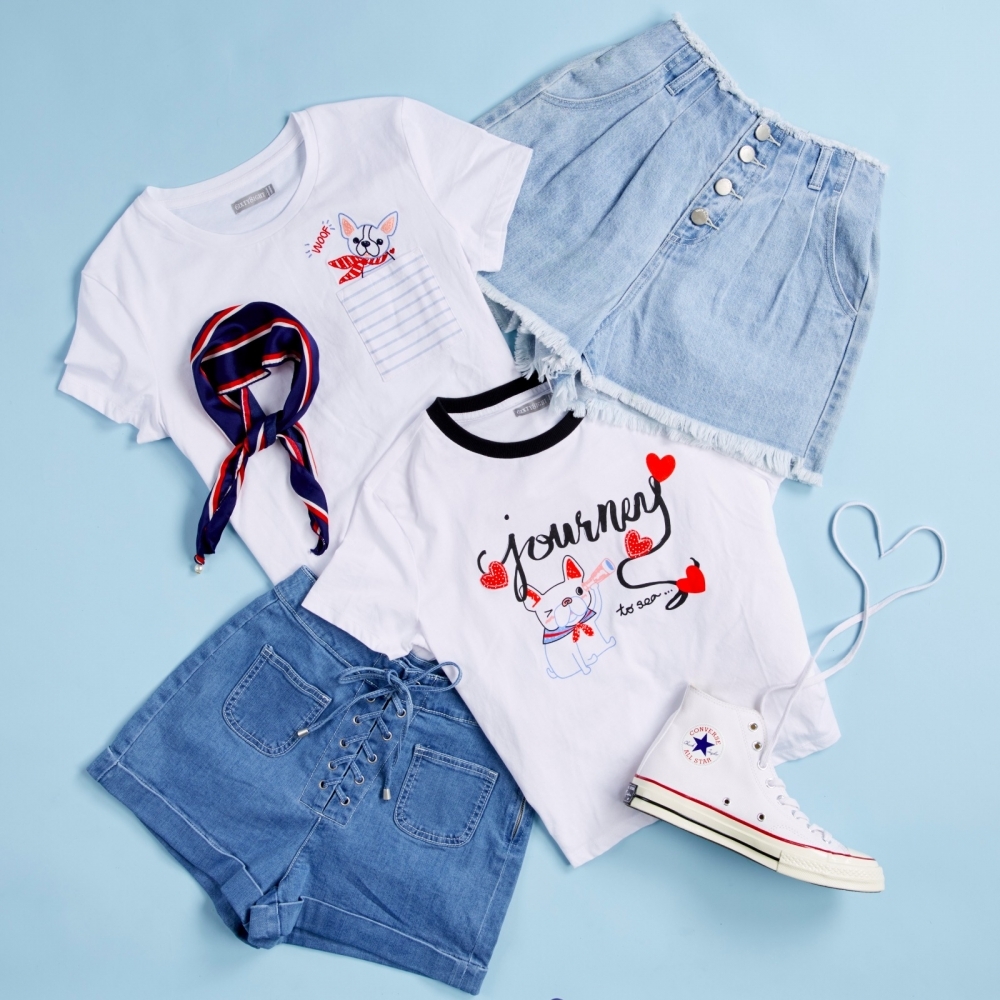 不想走帥氣路線的SIS們,還可以考慮以下系列的甜美簡約風~白T襯什麼都OK!