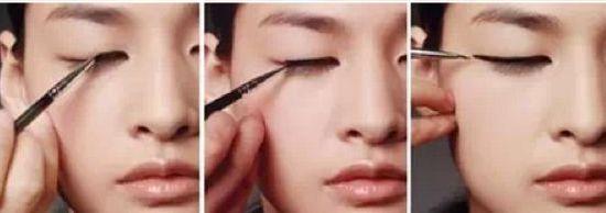 由眼最入面開始畫到一半,之後從一半慢慢向外畫出幼細的眼線!