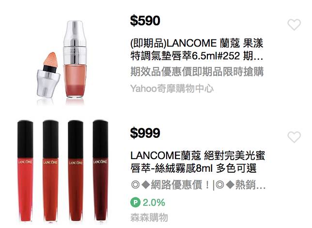 1.蘭蔻2018限量霓虹光唇萃/共6色/NT.1,050