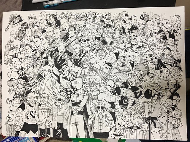 Twitter的「ドラゴン画廊・リー@dragongarowLEE」便以「光頭角色大集合」為主題,繪畫了一幅陣容龐大的角色人物大集匯!