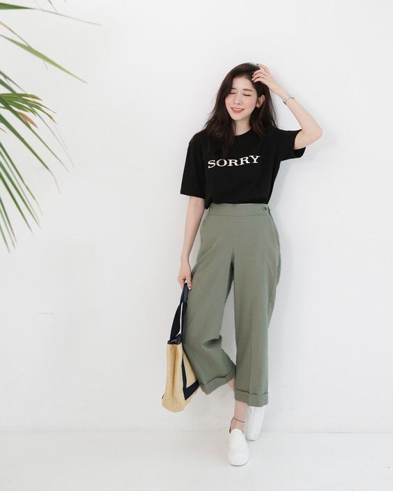 過短的褲只會讓肥肉暴露,反而穿上寬腳褲會有好好的遮肉效果〜