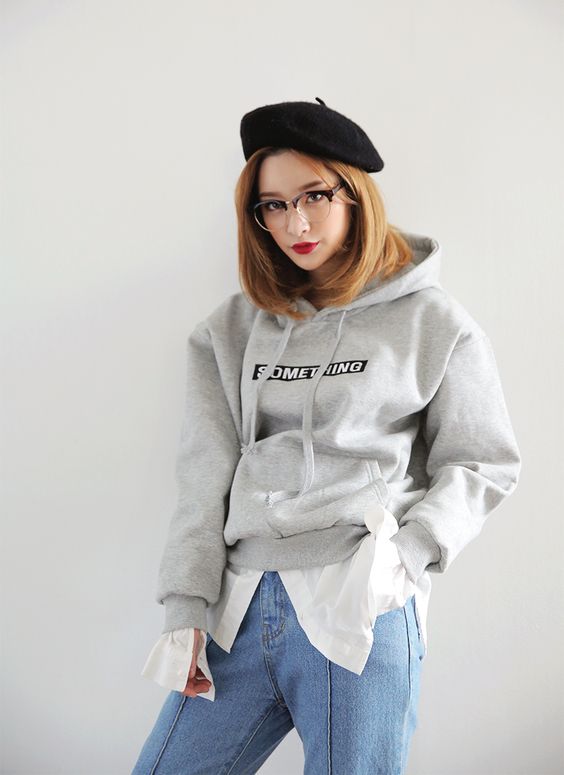 鬆身衛衣絕對是肉肉女大愛,可以將身體的肉藏得好好!女生在穿鬆身衛衣時,下身可以襯搭牛仔褲,再配上一副眼鏡,讓整個人的感覺立刻變帥氣!有時候走一下男孩風也很正啊!