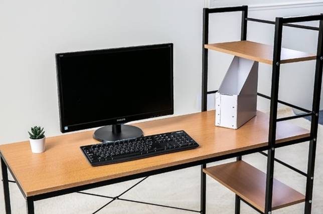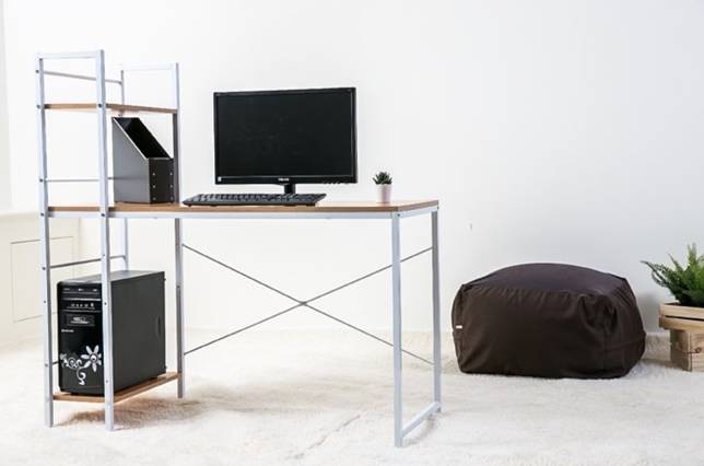 特別需要收納巧思的租屋空間,書桌若是能兼具書櫃的功能,自然是再好不過了。這款工業風書桌以咖啡色、黑色和白色作為基底,層架可以左右調整變換,除了置入書本或是資料,下方層板拆掉也可以放電腦主機,方便清潔整理,桌腳以X設計較為穩固,且桌面塗防水材料,整體質感大大提升。