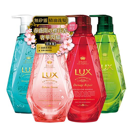 喜歡頭髮香香的 SIS 選這款準沒錯!一樣不含矽靈的 Lux 系列洗髮精,不只控油、保濕,還超級香!每款都是由精油調配,真的會有邊洗澡邊做高級 SPA 的感覺!
