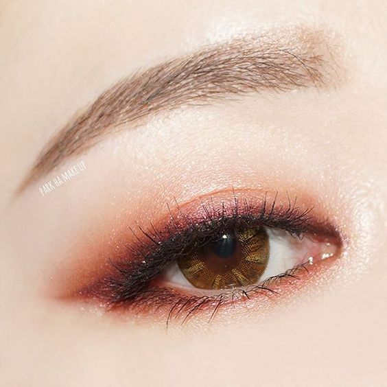 下面的畫法更簡單!只塗把整個眼皮都塗上淺橙色,再用淺啡色眼影畫一條貼近睫毛的上眼線,再刷上睫毛膏,就完成啦~不過這個眼妝只適合皮膚白的SIS畫!不然只會顯得你皮膚黑啊~