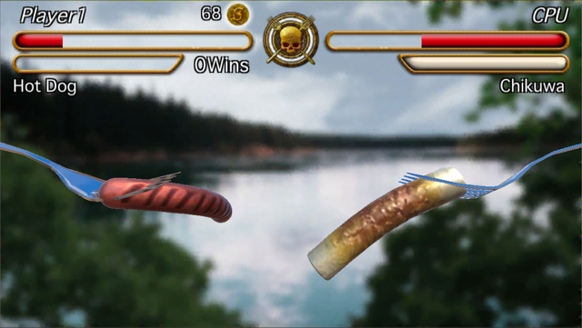 首先說說《Sausage Legend》的玩法,其實就十分簡單,在遊戲的介面之中,玩家會看見上方有一條紅色的生命值,以及攻擊用的能量值,當進入戰鬥時,玩家就要長按營幕來儲滿攻擊用的能量值,由於遊戲內的香腸與真實的腸是一樣,軟軟地不停擺動,所以玩家要等待時機,才可以放開手發出進攻,否則只會浪費攻擊機會,更有可能被對方反擊。
