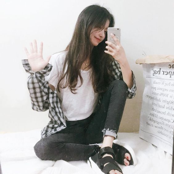 格子襯衫是當韓妞的定番之一,無論是黑白或是其他顏色的格子襯衫,SIS 一定要入手一件!