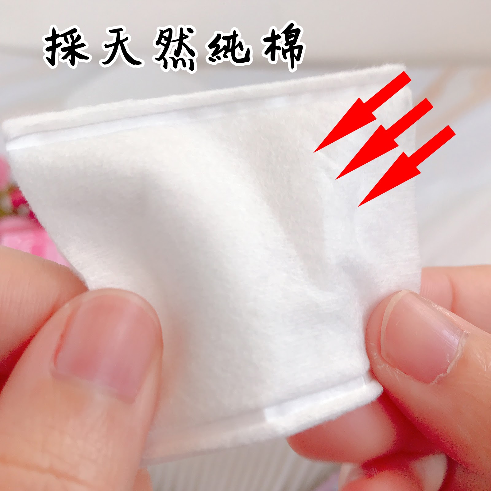 ▲化妝棉表層使用天然純棉製作,無使用接著劑,摸起來觸感柔順,卸妝時使用在臉部,也更不易刺激細嫩的臉部喔!