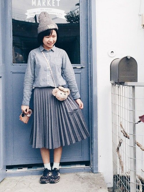 不只是長裙才是文青,把整體色系統一,便能夠很文青了~毛線帽+裙子的感覺就是文靜中加上一點活潑的感覺。