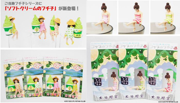 九州大分一次過推出兩款杯緣子,都是以炎夏為主題,其中一個系列抱住雪糕,另一個就只是圍上浴巾,兩個系列分別有4色及3色的選擇,而包裝就印有「大分特產香母酢(KABOSU)」。