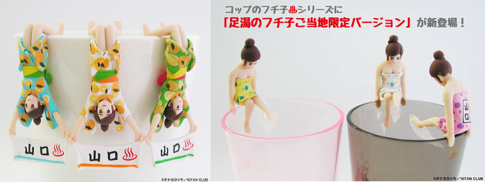 山口縣的亦推出了兩款限定地區的杯緣子,一款是印有當地花夏蜜柑圖案的花紋浴衣杯緣子,而第二款就是足湯杯緣子,是以河豚之鄉下關為主題的。