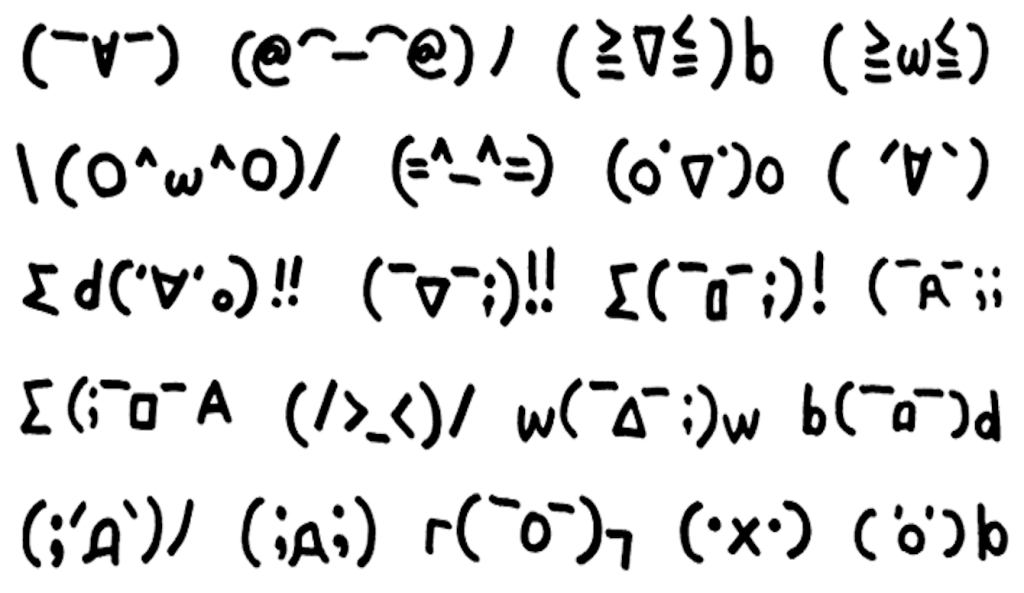 日本創造過不少「顏文字」,用鍵盤上能打得出的不同文字和符號拼湊出不同的表情和動作。雖然近年「繪文字」(也即是大家現在常說的emoji)大為流行,但不少日本人仍然會在日常的短訊中加插大量顏文字表達情感。大部份人第一次看到顏文字的運用時,也看不明白究竟對方在表達甚麼,真的較難理解……