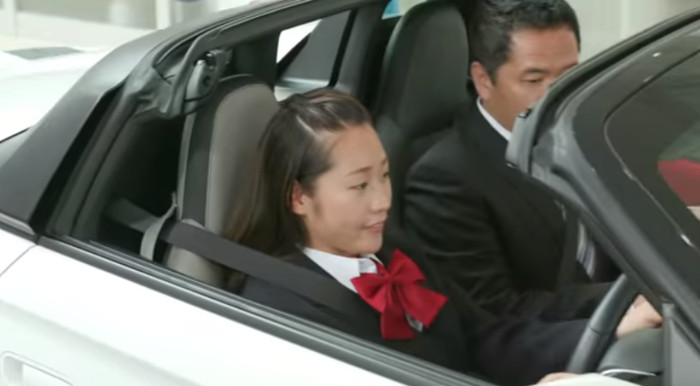 從片中可見,初時少女只是和普通的試車者沒有分別,只是在路上行走,突然間她改變原有的試車路線,並轉入賽車場行駛;少女即時使出渾身解數,由大直路加速,再切線入彎,到飄移、轉波等,高中少女仍然面不改容,不過坐在其身旁的男Sales就嚇到面容扭曲。