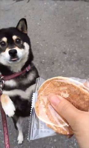 聽到蝦餅的鬆脆聲音時,柴犬兩眼發光,我想每個主人都有對付自家毛孩的終極武器吧(笑)