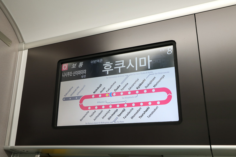 ▲列車的路線圖及目前位置等情報會以日、英、中、韓四國語言表示。