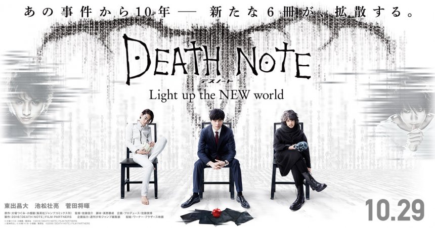 今次的故事將以夜神月與L對決的10年後為舞台、6本死亡筆記本落入人間的新世界。從短片可見,由AKB48成員川榮李奈所飾演的青井さくら,於涉谷街頭以死亡筆記大肆殺人。事件將捲入繼承L DNA的私家偵探龍崎(池松壮亮飾)、捜査官三島創(東出昌大飾)、崇拜奇拿的網路駭客紫苑優輝(菅田將暉飾)以及彌海砂(戸田恵梨香飾),展開鬥智鬥力的新戰爭。