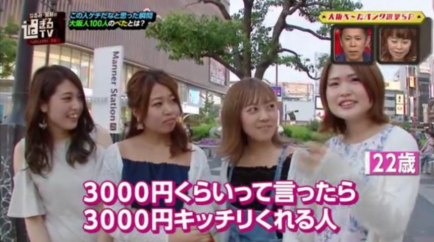 ▼ 在一個街頭訪問當中,接受訪問的女生表示「跟男生約會吃飯的時候,飯後他說出錢給我乘搭的士回家」(日本的的士車費不是超昂貴的嗎?