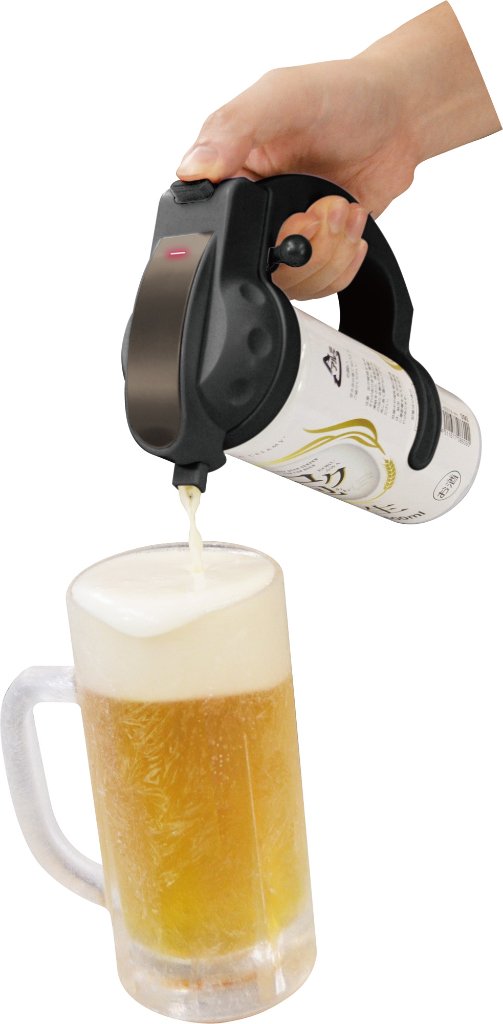 想倒出一杯完美的「七成酒、三成泡沫」的啤酒,用這部機器就對了。手柄上的按鈕,把它向前推,就會只倒出泡沫。