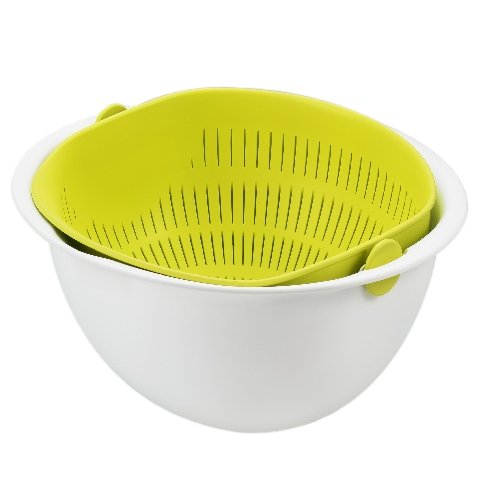 要把水隔走的時候,不用把上面的筲箕取出,把下面的碗傾側就可以了。下面的碗可以180度翻轉,確保不會留下水份。