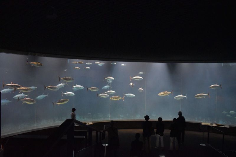 這個水族館裡面最著名的,就是世界上唯一一個飼養著「クロマグロ」(太平洋藍鰭吞拿魚,Pacific bluefin tuna)的水槽。這個水槽是冬甩形的,容量為2200噸,名為「アクアシアター」。因為吞拿魚靜止下來就會死掉,所以水槽設計成環形。而這個水槽的內側亦設置了一些椅子,讓參觀者可以一邊歇息,一邊欣賞吞拿魚的泳姿。