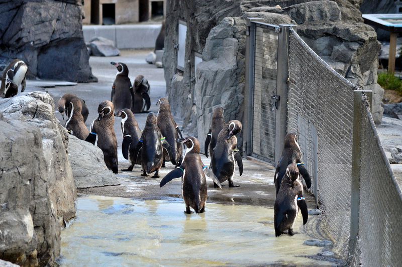 在室外的「ペンギンの生態」,可以看到各種企鵝游泳和步行的姿態。水族館飼養了四種企鵝,數量係全日本之冠。要欣類企鵝的泳姿,還可以走樓梯到地下層,從水底往上望。
