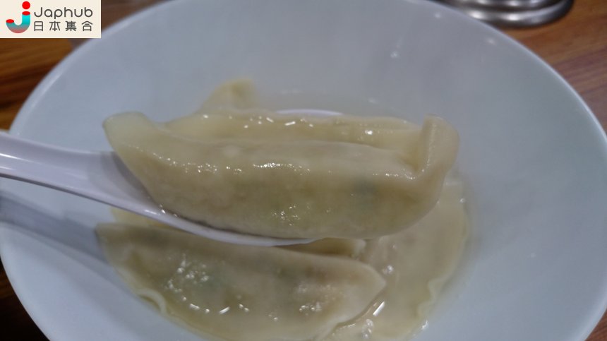 首先是「正嗣」。由於是餃子專門店,也只有煎餃和水餃選擇,一份6隻,盛惠210円。出於好奇心,我還是點了煎餃水餃各一份。煎餃即叫即煎,水餃滾一滾就禮成,所以先吃這份水餃。餃子皮很薄,用筷子夾不起來,而且和在香港吃到的很不同,沒有餃子應有的煙韌感。而餡感覺菜比肉要多,吃起來並不肥膩,就像是……菜肉雲吞。
