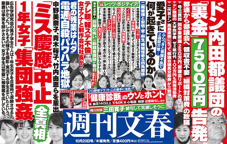 前體操選手,現時經營體操學校和當電視主持的池谷幸雄,就在最近出演的節目中透露說曾經收過《週刊文春》的來電。