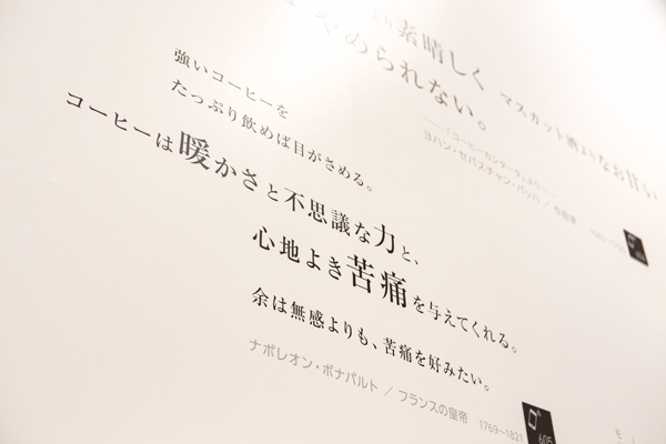 ▲「抽出」展覽室展示了各種來自世界各地的沖泡咖啡的器具。從器具的變化,可以看出技術的進步,而這處的牆壁上,也貼上了不少歷史偉人說過跟咖啡有關的名句。