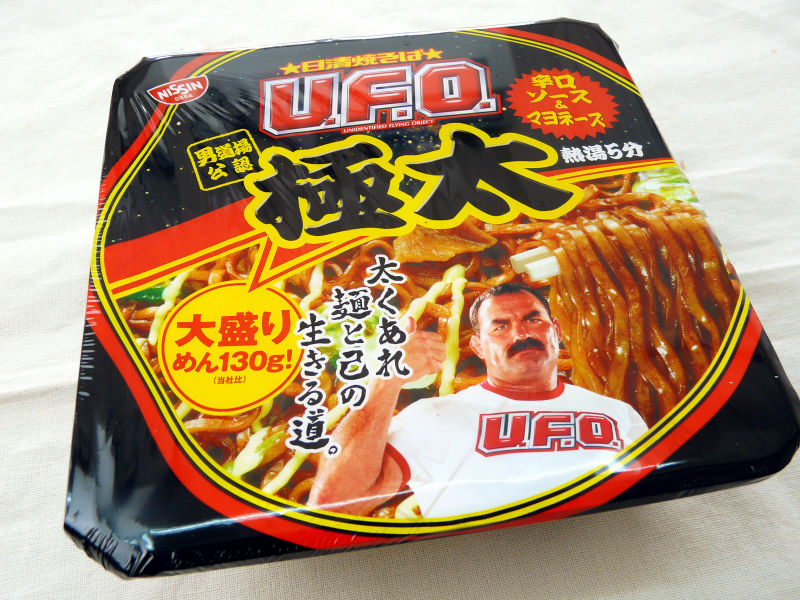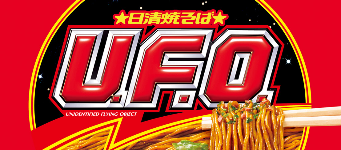 日清出品的炒麵杯麵「U.F.O.」,一向都被認為有著未確認飛行物體UFO的意思,就好像在表達這種杯麵是未來流行的食物,強行將它打造成潮流。