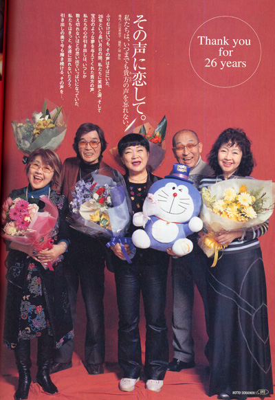 目前,日本《哆啦A夢》的元祖聲優就剩下飾演多啦A夢的大山羨代(83歲)、飾演大雄的小原乃梨子(81歲),以及飾演靜香的野村道子(78歲)。