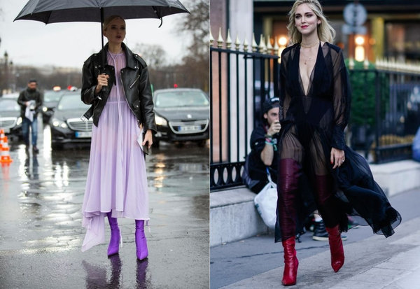 今年秋冬穿過膝長靴搭配長裙是最時髦的造型,而選擇具有透視效果的長裙,不只性感迷人,也模糊了肉肉的雙腿,讓想要展現性感的女孩,不用擔心胖腿出來見人,和修飾曲線的過膝靴是最佳組合。